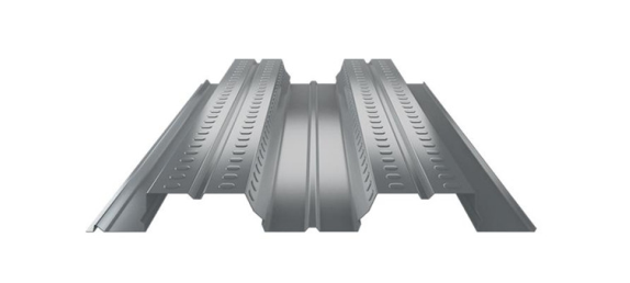 3.压型板表面压纹使楼承板与混凝土之间产生最大的结合力,使二者形成整体,配以加劲肋,使楼承板系统具有高强承载力。